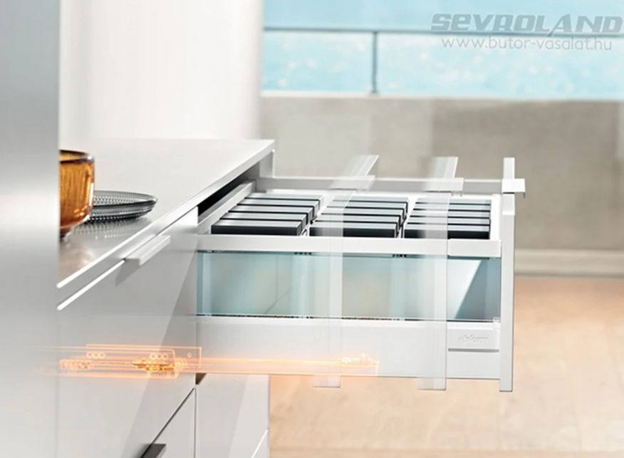 A mai modern otthonokban a csend és a kényelem szinte alapelvárás. Az olyan rendszerek, mint a Blumotion gondoskodnak a csendes és finom záródásról, még akkor is, ha kicsit nagyobb lendülettel toljuk be a fiókokat. Ez nemcsak praktikus, de a fiókban tárolt eszközöket is megvédi a rázkódástól és a sérülésektől.
