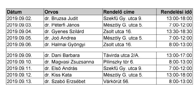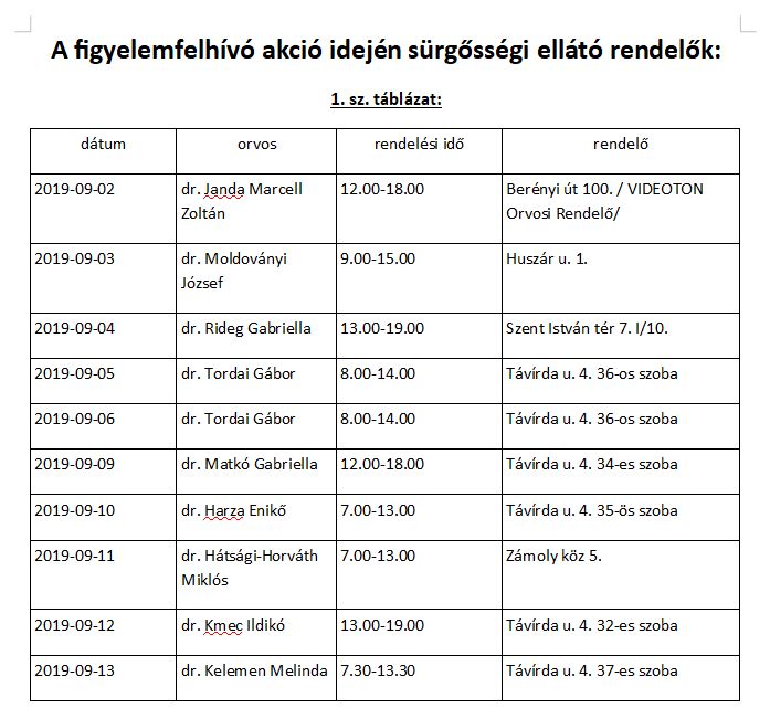 akkora ellátóképességet jelent. Akut fogászati beteg tehát nem marad ellátatlanul, azonban egyéb fogazat eredetű panaszokkal, kezelésekkel (pl.: tömés, fogkőeltávolítás) a pácienseknek 2 hetet várniuk kell. A szeptember 2-ától 13-áig tartó ügyeleti rend a Fehérvár Televízió honlapján részletesen megtalálható.